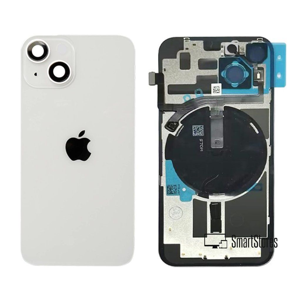 Apple iPhone 14 Plus - Sklo Zadného Krytu / Housingu + Bezdrôtové nabíjanie + NFC + Blesk + Mikrofón + MagSafe Magnetický Krúžok + Sklíčka Kamery (Hviezdna biela / Starlight) - Original Apple