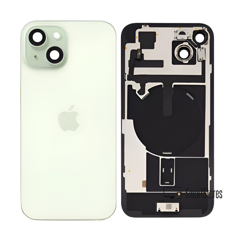 Apple iPhone 15 - Sklo Zadného Krytu / Housingu + Bezdrôtové nabíjanie + NFC + Blesk + Mikrofón + MagSafe Magnetický Krúžok + Sklíčka Kamery (Zelená / Green) - Original Apple
