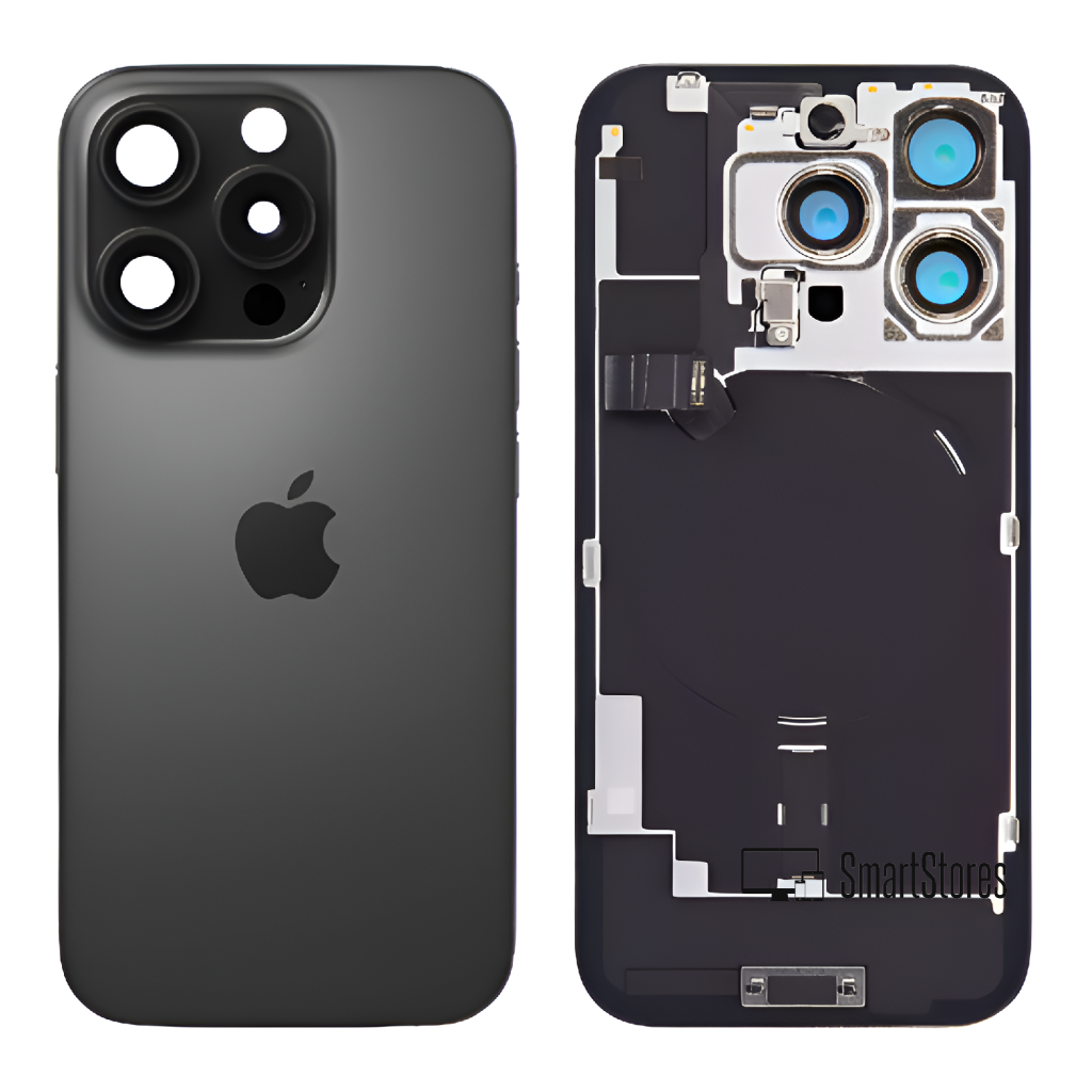 Apple iPhone 16 Pro - Sklo Zadného Krytu / Housingu + Bezdrôtové nabíjanie + NFC + Blesk + Mikrofón + MagSafe Magnetický Krúžok + Sklíčka Kamery (Čierny titán / Black Titanium) - Original Apple