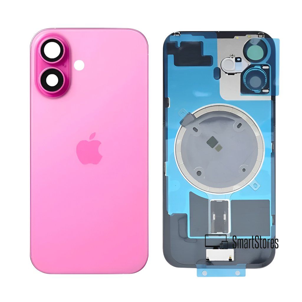Apple iPhone 16 - Sklo Zadného Krytu / Housingu + Sklíčka Kamery + MagSafe Magnetický Krúžok (Ružová / Pink) - Original Apple